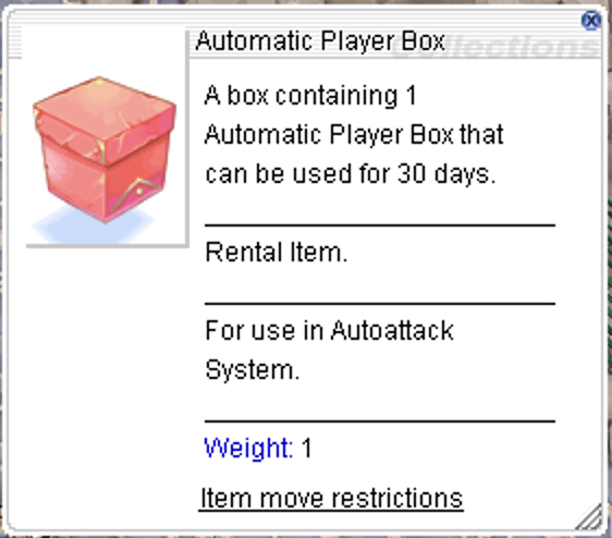 เทเลพอร์ตอัตโนมัติ (ใช้ Wing of Fly หรือสกิล Teleport โดยอัตโนมัติ) ต้องใส่ Wing of Fly หรือสกิล Teleport ในช่องสุดท้ายของแถบคีย์ลัดแรก (F9)