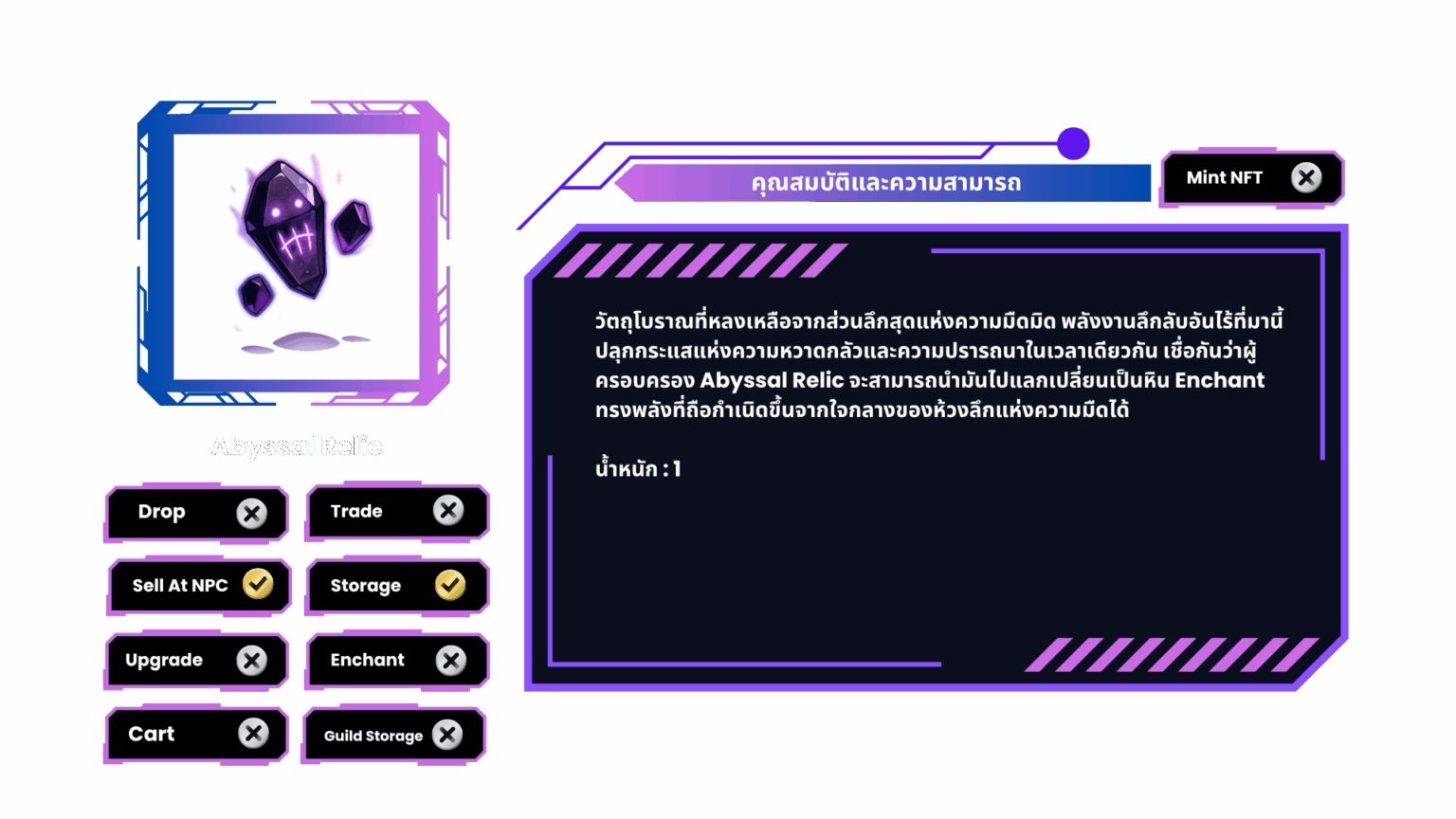ชิ้นส่วนเหล่านี้ถูกหล่อหลอมจากพลังของ Abyss พร้อมปลุกพลังแฝงในอุปกรณ์ของผู้ถือครอง แต่ทุกพลังย่อมมีราคาที่ต้องจ่าย…