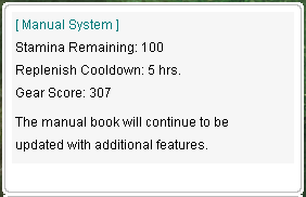 ผู้เล่นจะสามารถดู gear score ของตัวเองได้จาก manual book หรือเมื่อเข้าสู่แผนที่ใหม่ จะข้อความจะแจ้ง gear score ปัจจุบันของผู้เล่น