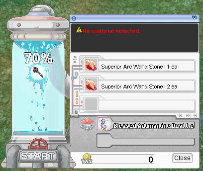 รายละเอียดจะแสดงขึ้นมา และปุ่ม Start จะทำงานเมื่อมีไอเทมที่จำเป็นครบหมดแล้วเท่านั้น