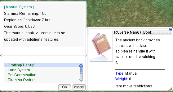 เปิด ROverse Manual Book เลือกเมนู Crafting (Grade-up