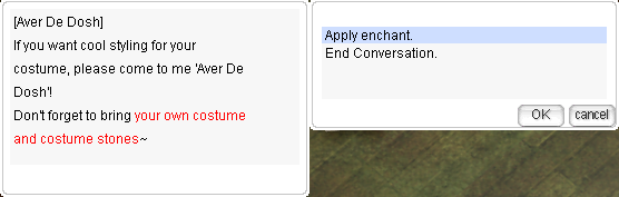 * คุณสามารถตรวจสอบคอสตูมของคุณว่าสามารถเอนชานต์ได้หรือไม่กับ NPC โดยไม่ต้องมี Costume Enchantment Stones