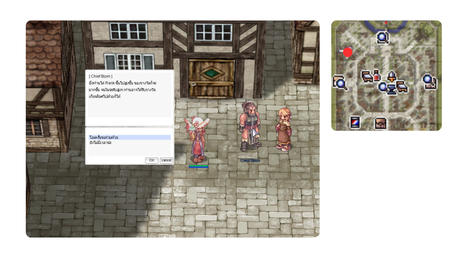 * ผู้เล่นตัดสินใจเดินทางไปสอบถามข้อมูลที่ NPC Chief Bjorn