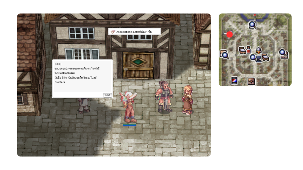 * NPC Chief Bjorn มอบหมายภารกิจคุ้มกัน NPC Ellie ไปยัง Izlude ให้เป็นบททดสอบแรกของผู้เล่น พร้อมมอบ “Association’s Letter” เพื่อนำไปยื่นกับเจ้าหน้าที่สมาคมที่ Izlude