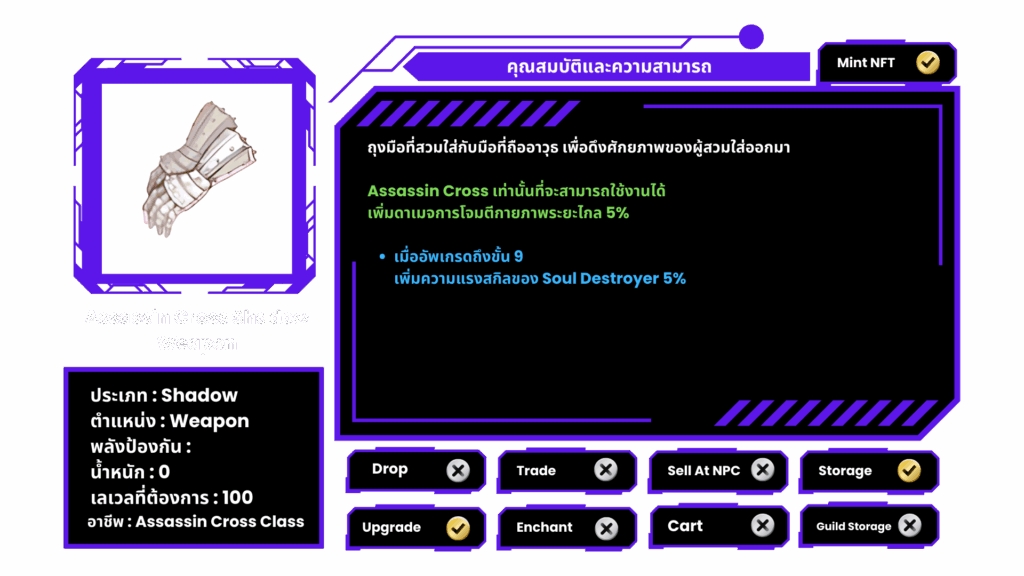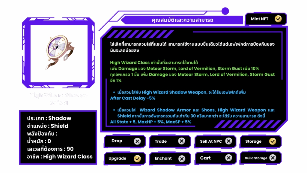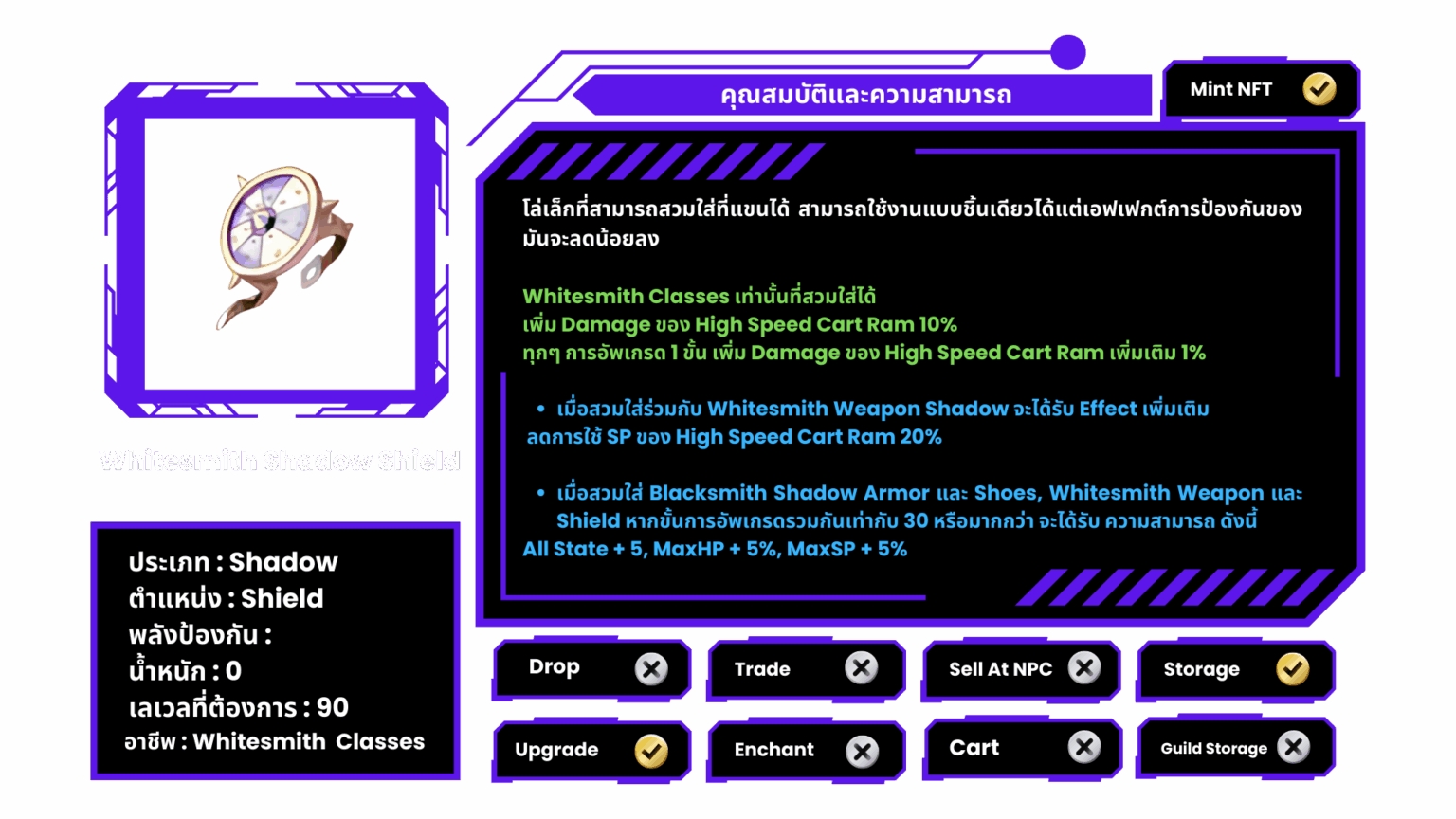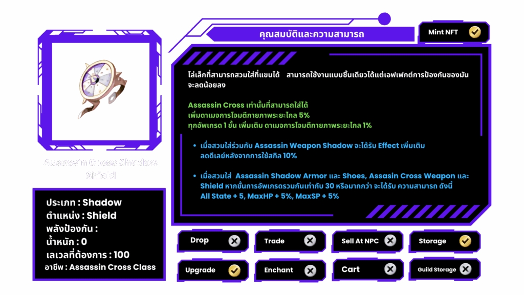 Assassin Shadow Armor +7 + Assassin Shadow Shoes +7 → แลกเป็น Assassin Cross Shadow Shield