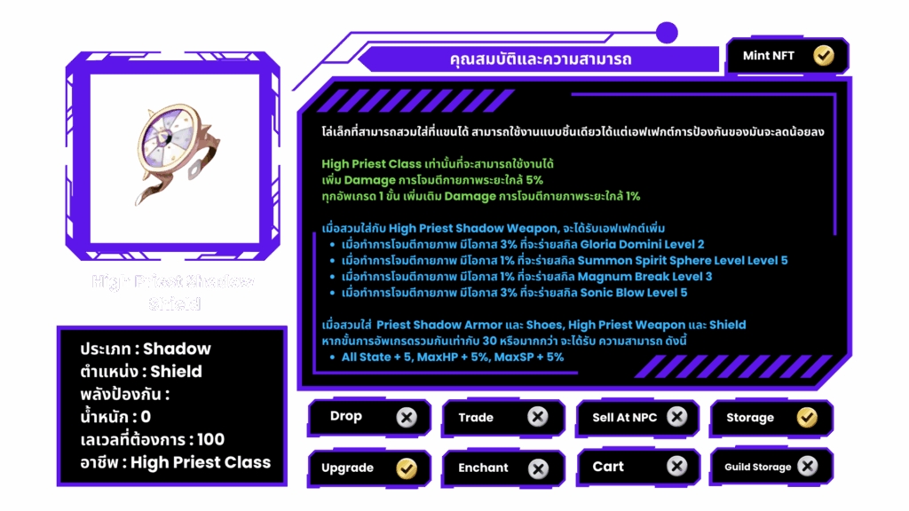 Priest Shadow Armor +7 + Priest Shadow Shoes +7 → แลกเป็น High Priest Shadow Weapon