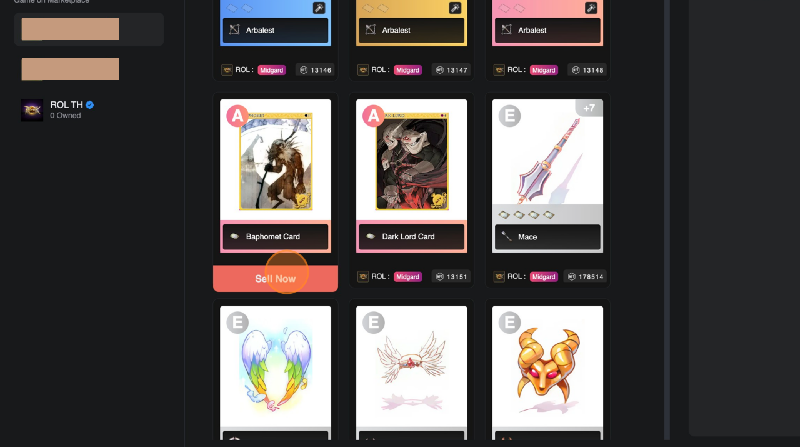 4. หลังจากเรียกดูรายการไอเทมที่ต้องการขายแล้ว ให้คลิก **\[Sell Now]** เพื่อเริ่มลงรายการขาย