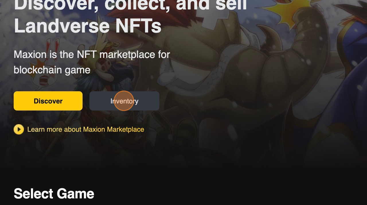 หากต้องการขายสินค้าบน Marketplace ให้คลิกที่ปุ่ม \[Inventory] นี่จะเป็นการแสดงรายไอเทมที่จัดเก็บไว้ในกระเป๋าเงินบัญชีเกม
