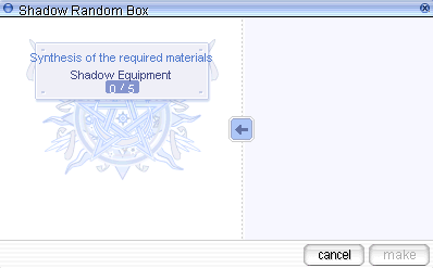 8. After clicking **make**, the system will recycle the selected 5 pieces and randomly generate 1 new piece of **Shadow Equipment**.
