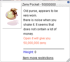 Zeny Pocket: 50,000,000