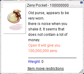 Zeny Pocket: 100,000,000