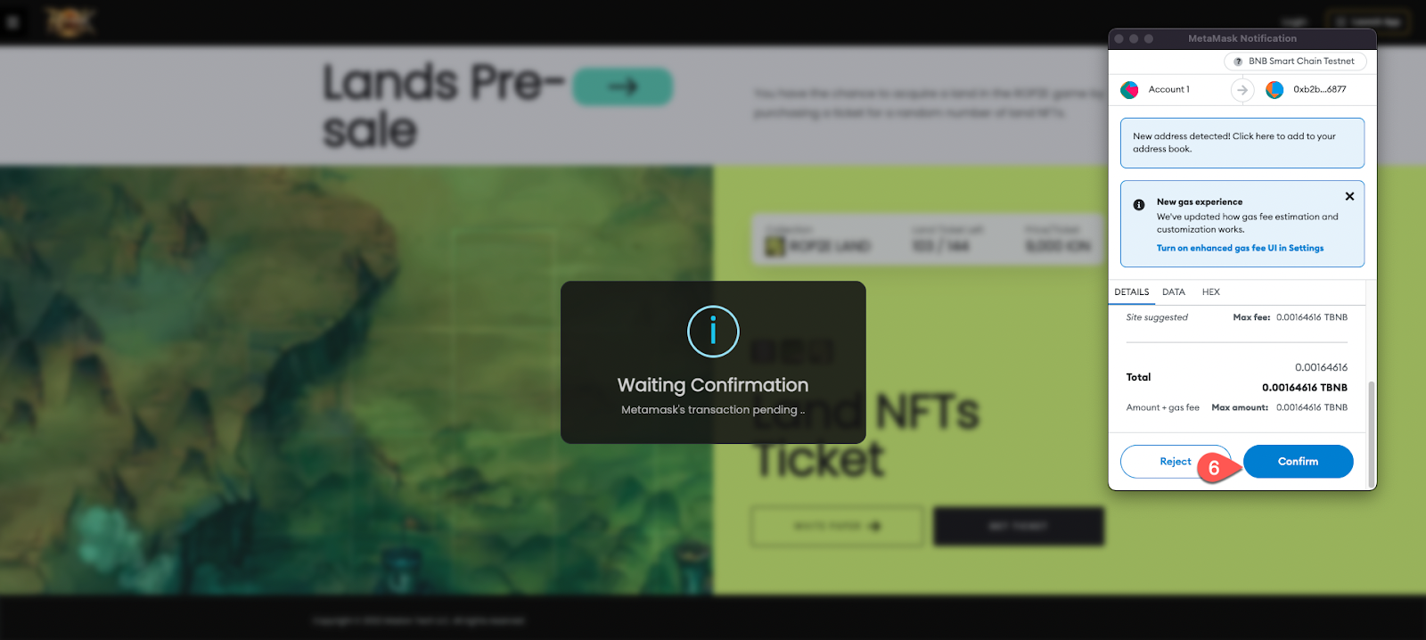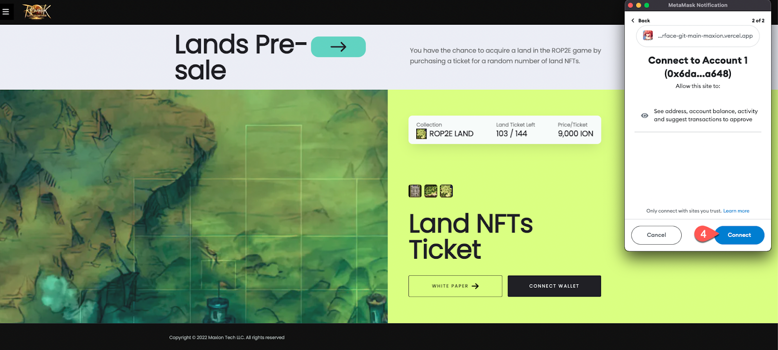 6. Click the \[Confirm] button to proceed. (Additional [Gas fees](https://maxion-1.gitbook.io/ragnarok-landverse-whitepaper/token-economy/tokenomics/transaction-gas-fees) applies)