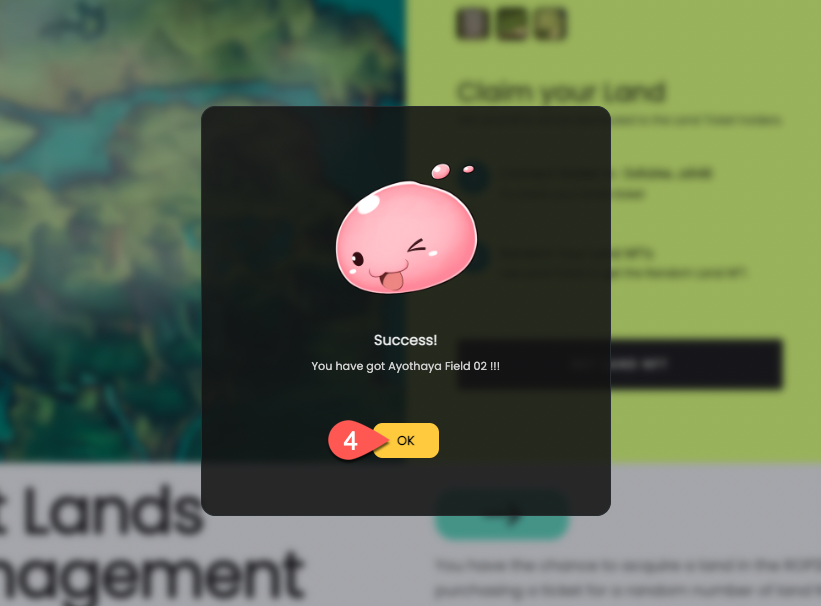 4. A popup will appear and notify you on the Land you receive.